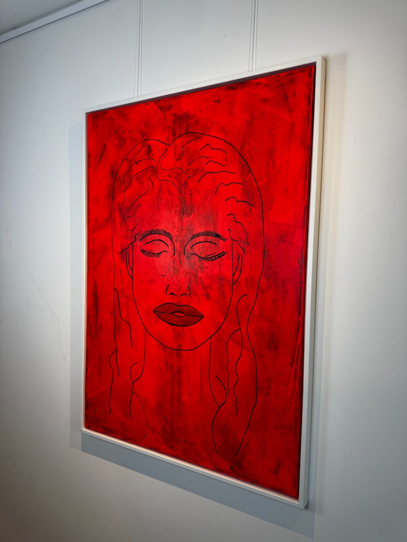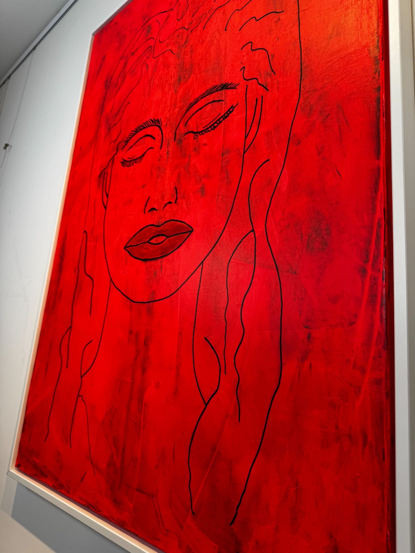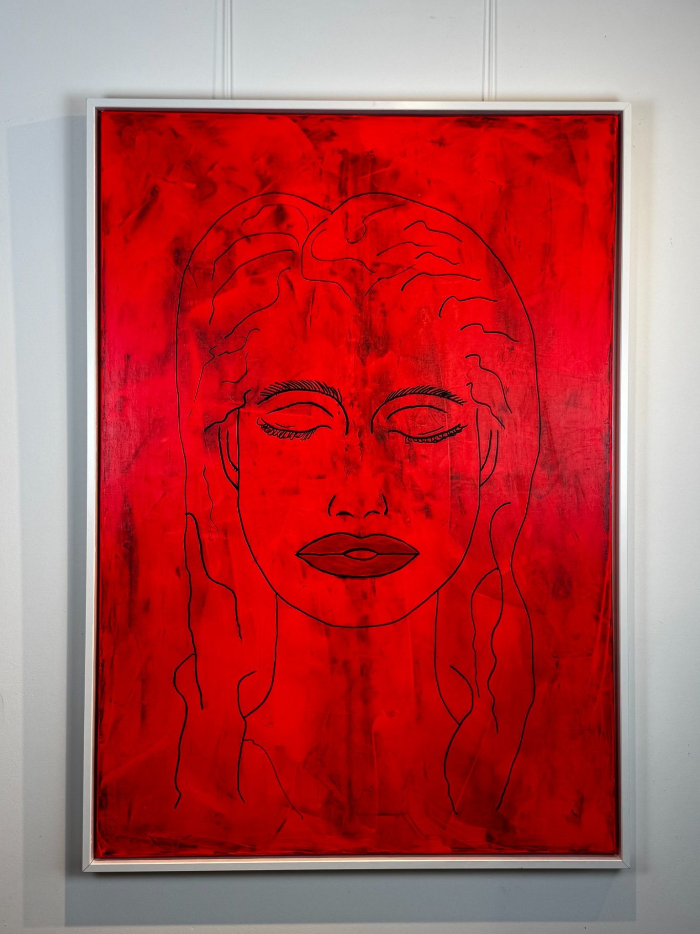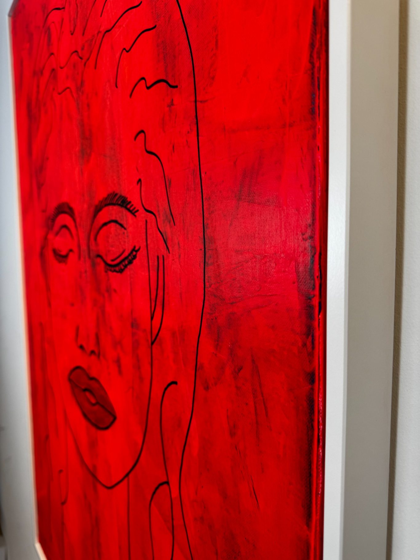 „Space Girl“ erscheint in kraftvollem Rot vor weißem Hintergrund und wurde komplett mit dem Flächenspachtel gestaltet – ganz ohne Pinsel. Schicht für Schicht wurden Formen und Strukturen aufgebaut, die eine lebendige Dynamik und Tiefe schaffen. Die reduzierte, dennoch ausdrucksstarke Komposition verbindet Energie mit einer klaren, minimalistischen Ästhetik und lädt dazu ein, immer wieder neue Details zu entdecken.