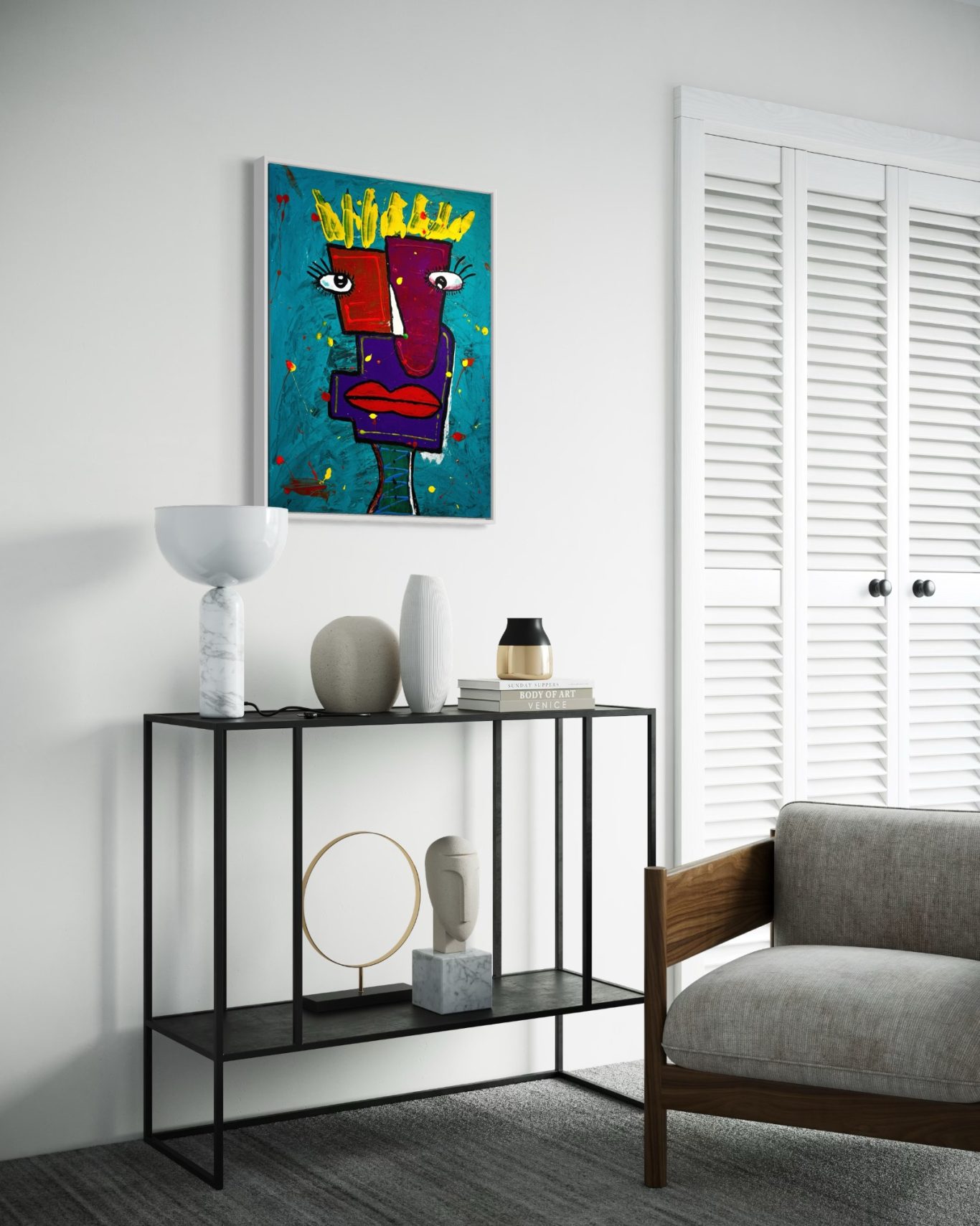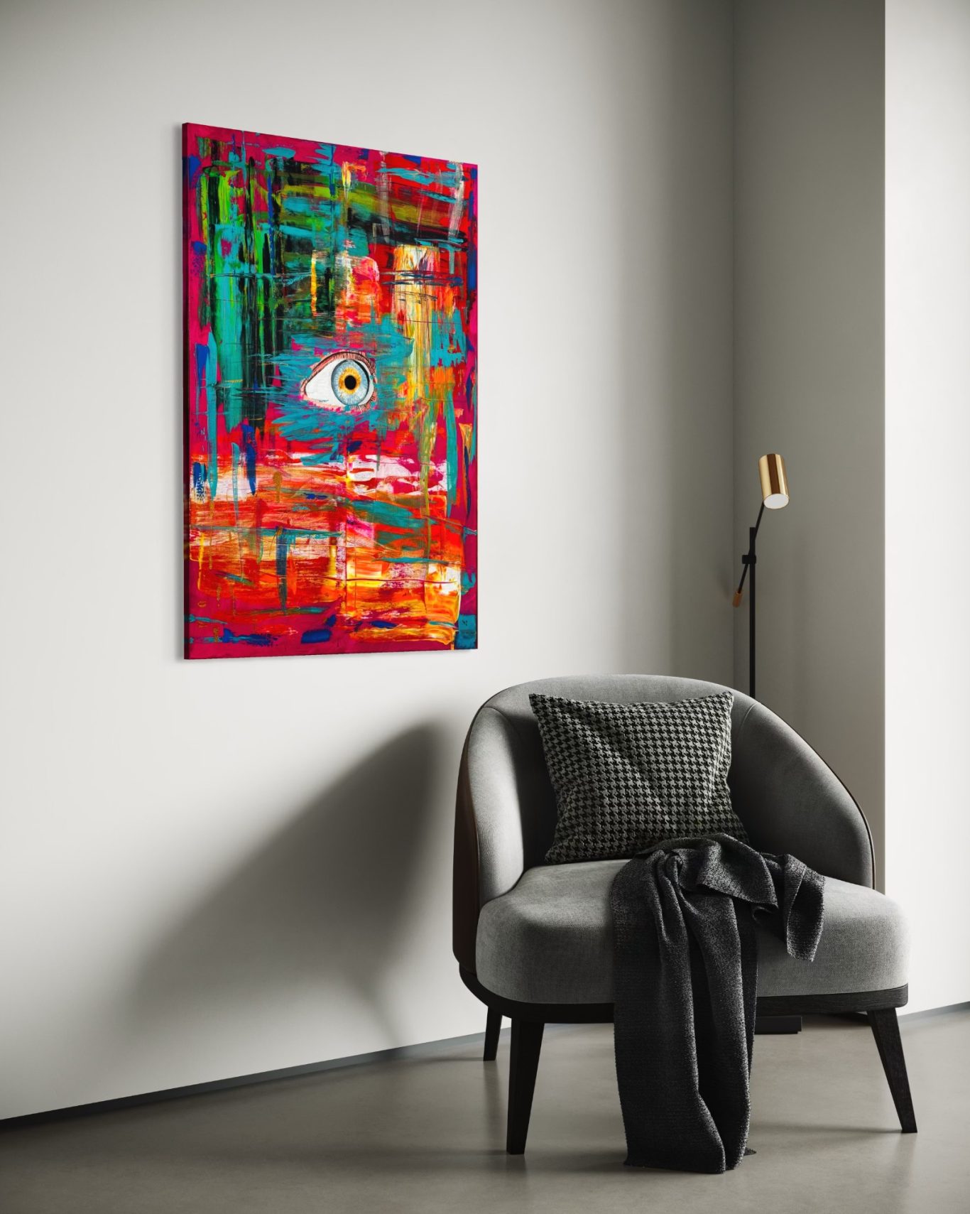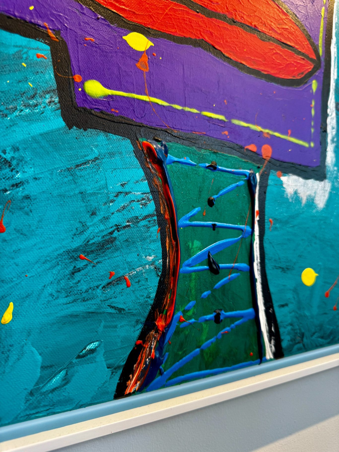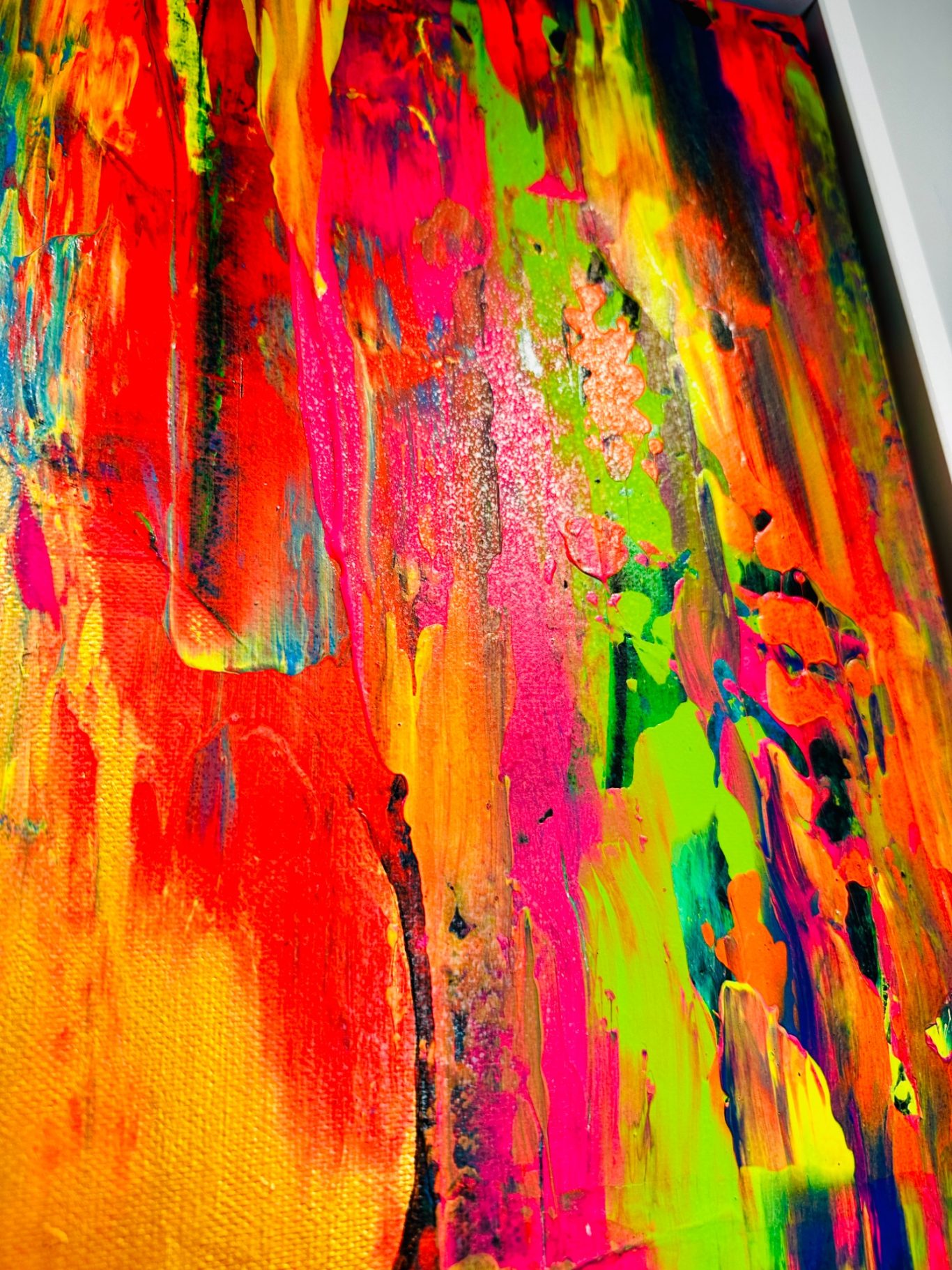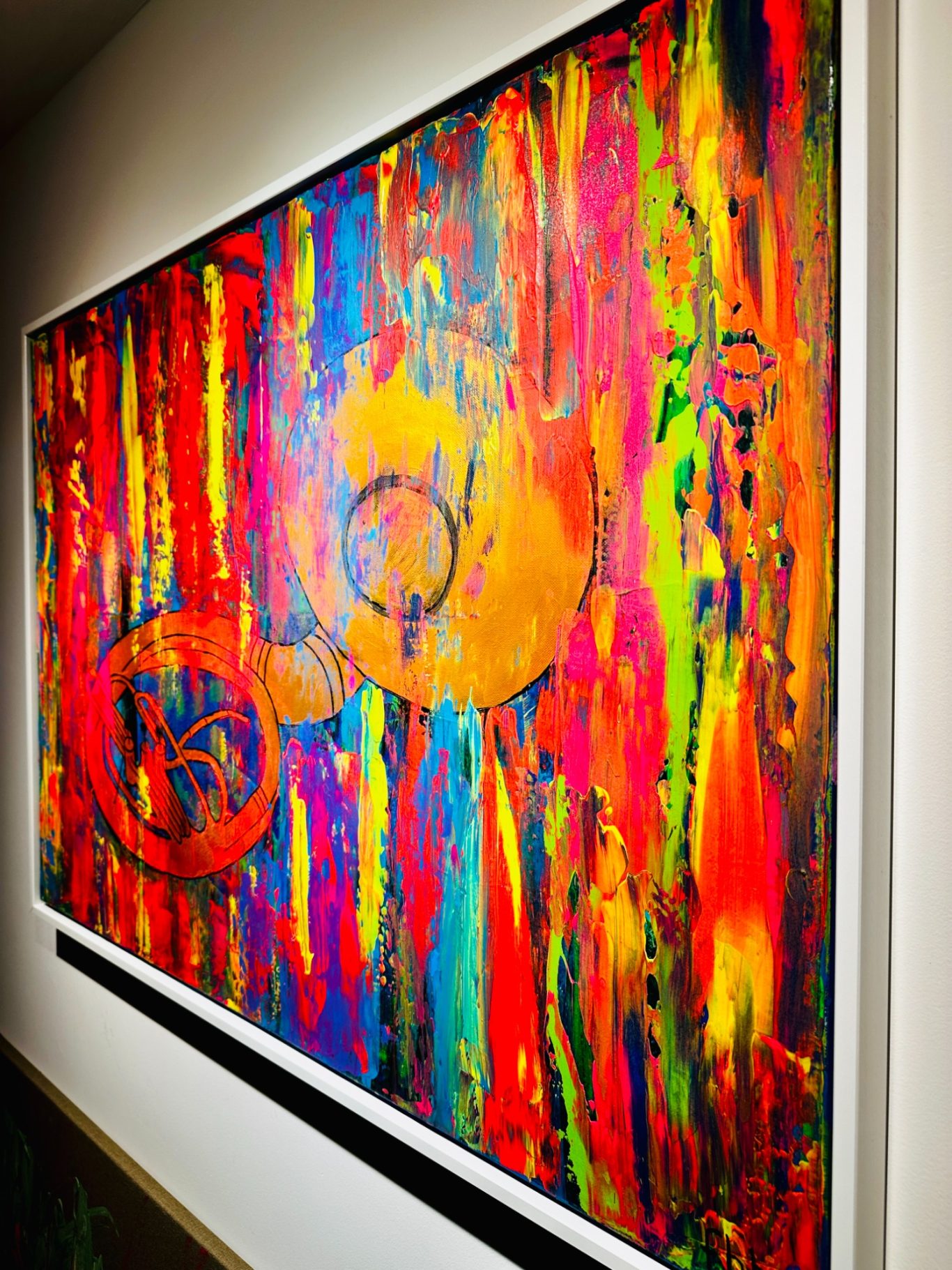 „Wall of Love“ ist ein farbenfrohes Werk, das die vielfältigen Facetten der Liebe einfängt. Mit lebendigen Formen und harmonischen Farbkompositionen öffnet es einen Raum voller Emotionen und Wärme. Die Arbeit thematisiert die verbindende Kraft der Liebe als eine universelle Energie, die Menschen miteinander verbindet und inspiriert.