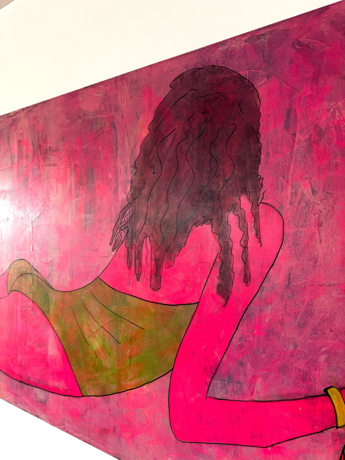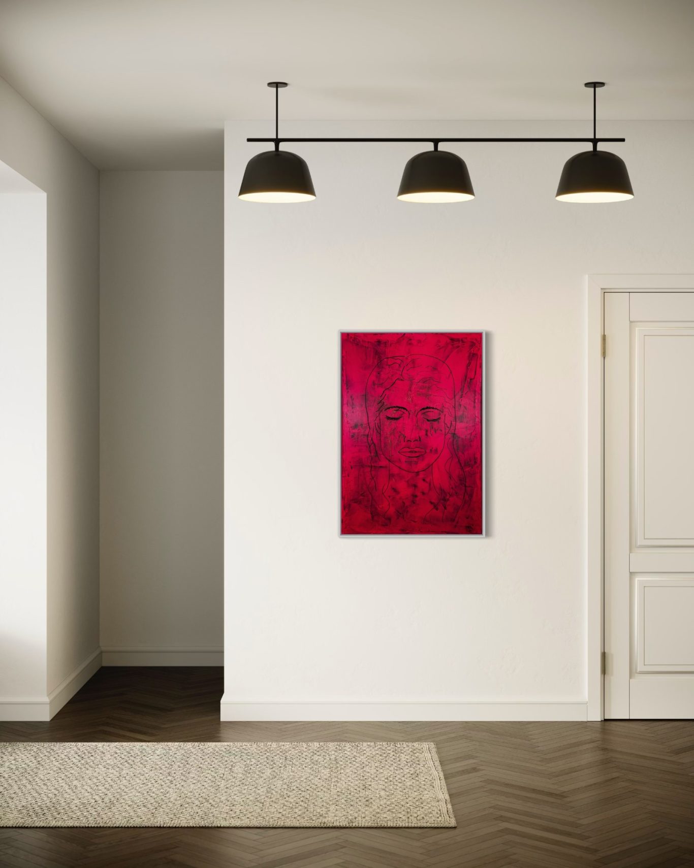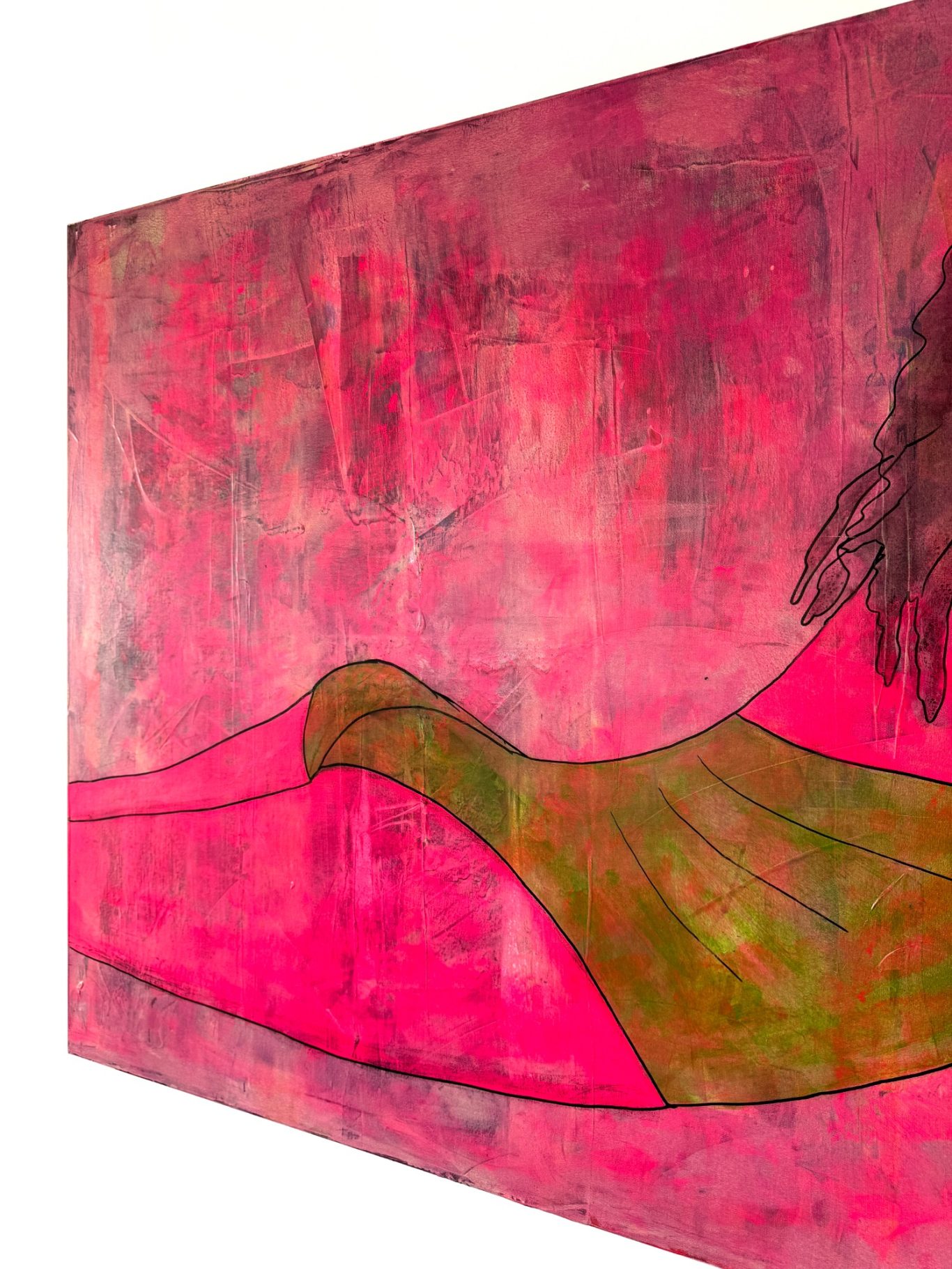 „Aurélie 973“ zeigt das Gesicht einer jungen Frau – offen, nachdenklich, in sich versunken. Das Bild ist von Neonmagenta durchzogen, in lasurartigen Schichten aufgetragen. Die intensive Farbe verliert durch die Technik nicht an Leuchtkraft, sondern gewinnt an Tiefe: Sie wirkt zugleich kraftvoll und durchscheinend.