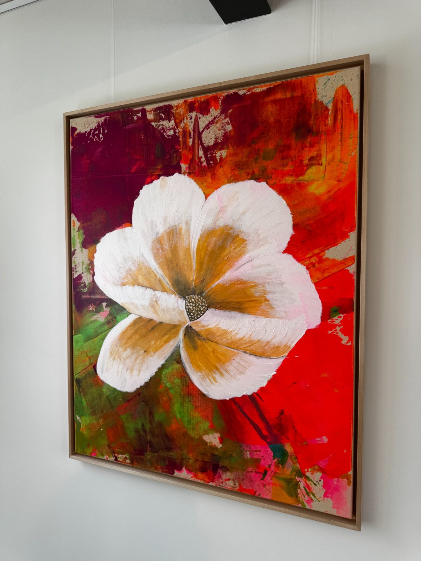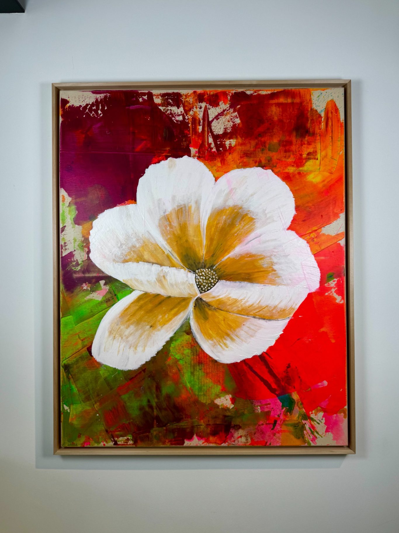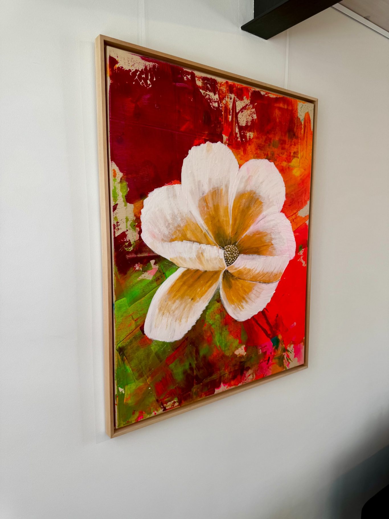„White Clematis“ symbolisiert Reinheit, Neuanfang und stille Eleganz. In diesem Werk verbinden sich feine Strukturen und sanfte Farbnuancen zu einer floralen Hommage an das Wesentliche. Die Kombination aus Spachtel- und Pinselstrichen verleiht der Komposition Tiefe und Lebendigkeit – Schicht für Schicht entfaltet sich ein poetisches Bild, das wie das Leben selbst vielschichtig und voller Bedeutung ist.