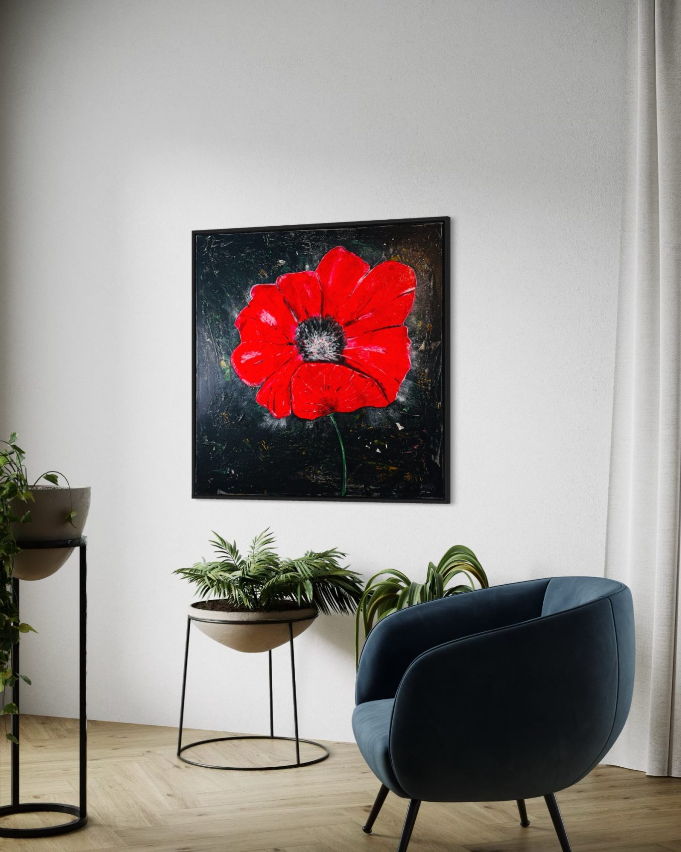 „Poppy“ zieht mit leuchtendem Rot alle Blicke auf sich. Die Mondblume steht sinnbildlich für Liebe und Leidenschaft – kraftvoll, zart und zugleich vergänglich. Einst ein vertrauter Anblick auf Feldern und Wiesen, wird sie heute durch den intensiven Einsatz von Herbiziden zunehmend verdrängt. Ihre Bestände nehmen von Jahr zu Jahr ab. 2017 wurde sie zur Galionsfigur des Wildblumensterbens ernannt – ein mahnendes Symbol für den dramatischen Verlust an Blütenvielfalt in unserer Kulturlandschaft.