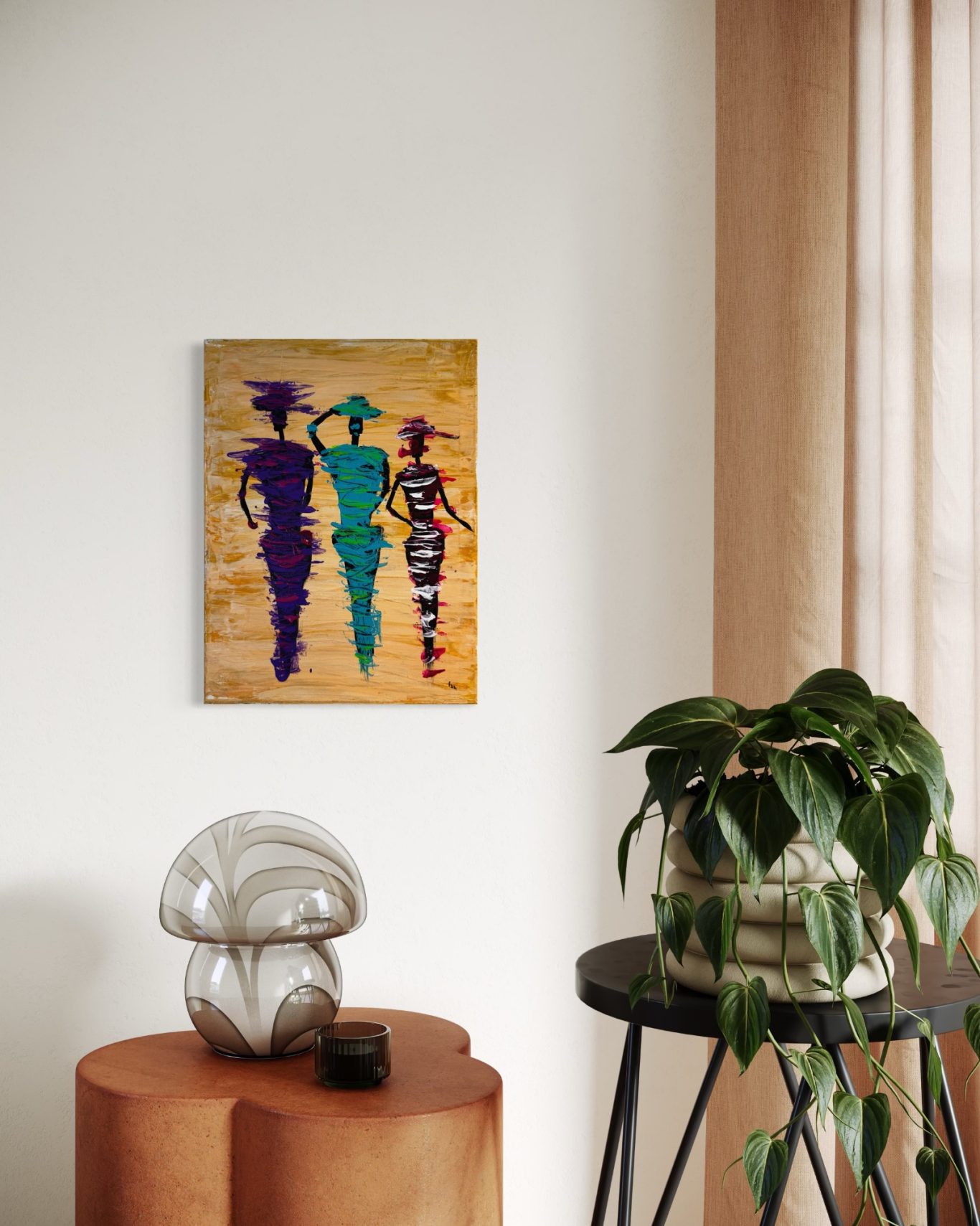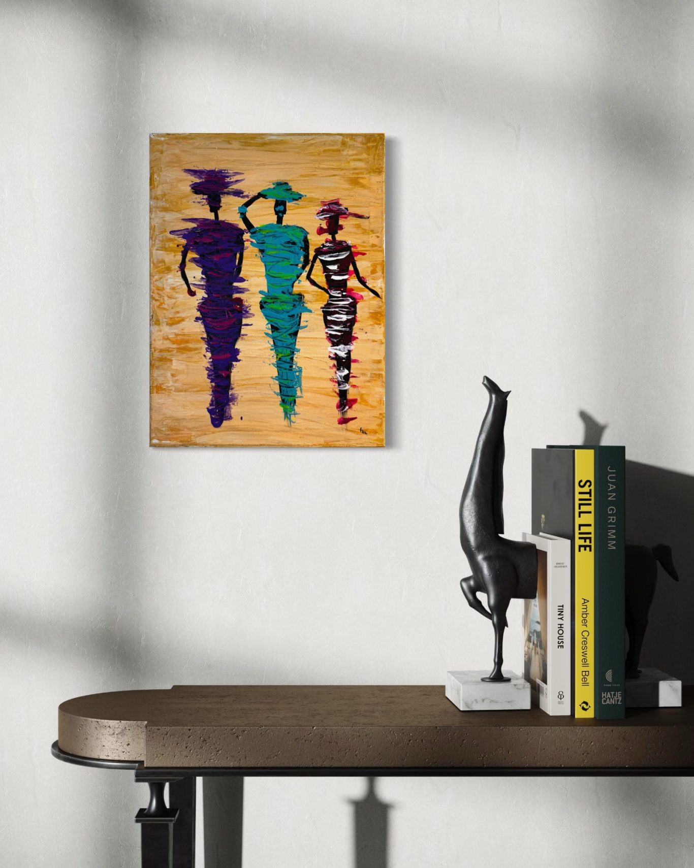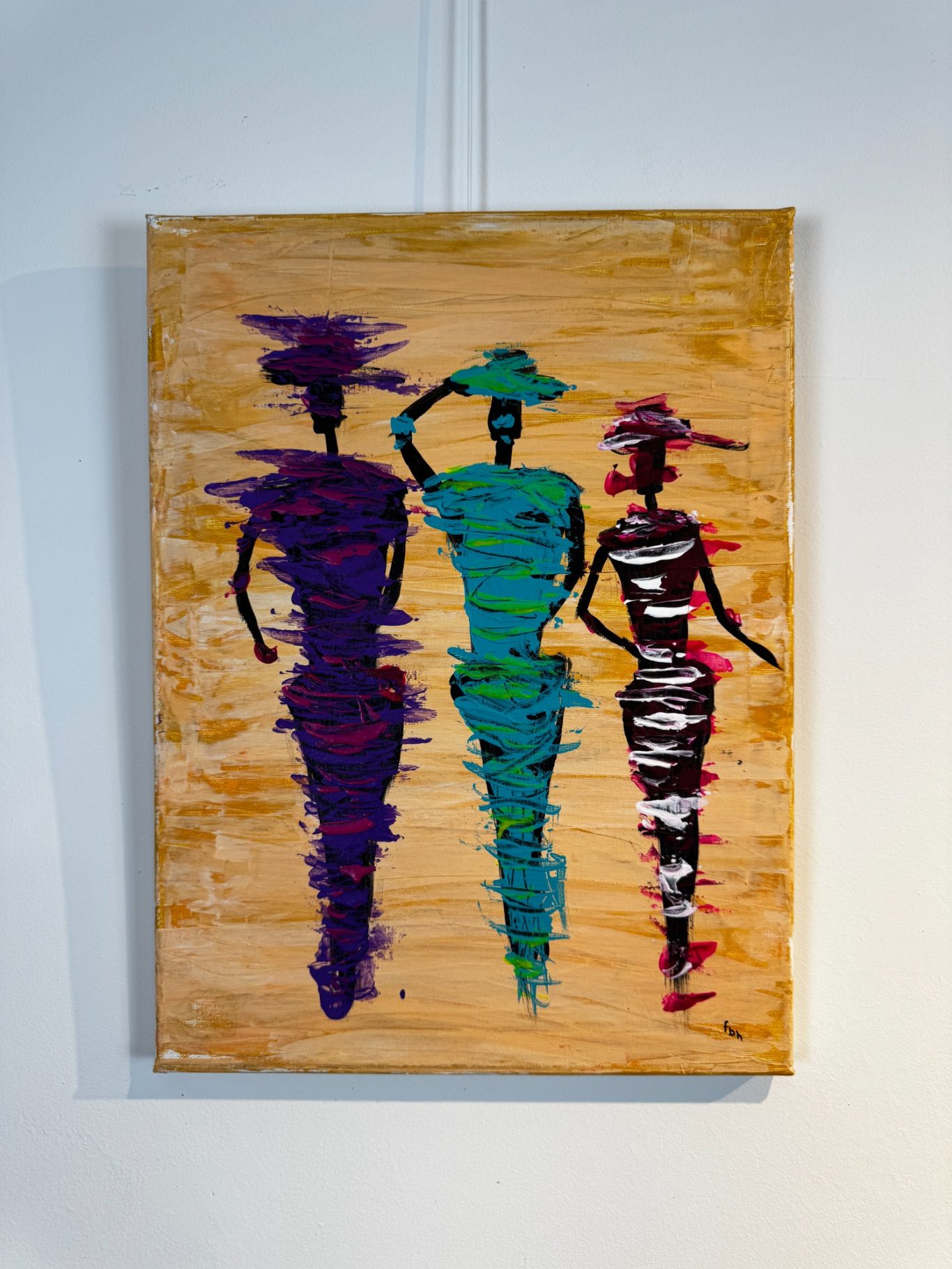 „Drei Freundinnen“ zeigt drei Frauen in farbenfrohen Kleidern und stilvollen Hüten – eine Szene voller Leichtigkeit, Zusammenhalt und femininer Eleganz. Mit lebendigen Farben und liebevoll ausgearbeiteten Details fängt das Werk die stille Verbindung zwischen den Frauen ein – ein Sinnbild für Freundschaft, Lebensfreude und das gemeinsame Erleben besonderer Momente. Dieses Bild strahlt Wärme aus und erzählt eine Geschichte, die berührt und zugleich zum Schmunzeln einlädt.